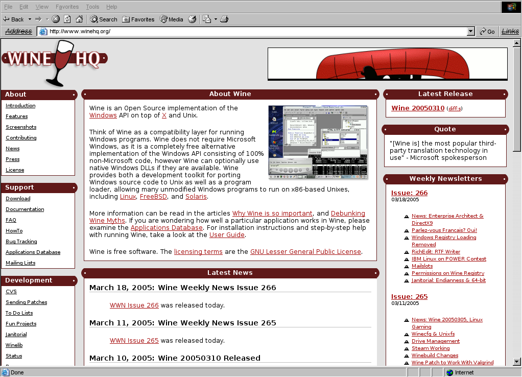 Hello, I tried to search for information on regressions on the winehq site but I couldn't find it (maybe it should be made visible on the documentation page?) Anyway, in internet explorer a visual regression happened: with my previous cvs build from 15 march, things were displayed correctly, but now (cvs build from 23 march) the 'address' and the 'links' fields are displayed incorrectly: they are bigger than they should be, and they are 'striked through' which should not happen; See also the attached screenshots - I'm sure it's clear what I mean; Could someone point me to the correct pages to find out what caused this? I'm sure someone will be fix this a lot faster than I could do but I want to learn how to solve such a problem :) regards, Joris