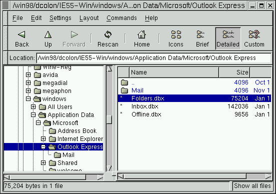 In attempting to play with Outlook Express 5 under Wine, I find that the files created by OE are bad/damaged. The attachments are as follows: hoho.gif - view under Linux shows Folders.dbx as 75,204 hoho-win.gif - view under Windows shows Folders.dbx as 74K (pretty good). scandisk.gif - error message from scandisk under windows. hoho-win-after.gif - view under Windows shows Folders.dbx as 60K after repair. hoho.txt - selected pieces of the trace from Wine during the creation of Folders.dbx. Revisiting it under Linux shows the size is now 61,440. The Linux is RH 6.1 and the kernel is 2.2.12-20. This is the only file that this problem occurs on (not true, it also occurs on Inbox.dbx in the same folder). No other file that I create under Linux is damaged. I suspect that this may be due to Wine implementation of the call sequence of: GetFileSize(..) SetFilePointer(..) SetEndOfFile(..) Any comments or suggestions? Guy Albertelli <<galberte(a)neo.lrun.com>> Bathed in his currents of liquid helium, self-contained, immobile, vastly well informed by every mechanical sense: Shalmaneser. Every now and again there passes through his circuts a pulse which carries the cybernetic equivalent of the phrase, "Christ, what an imagination I've got. " - Stand on Zanzibar by John Brunner