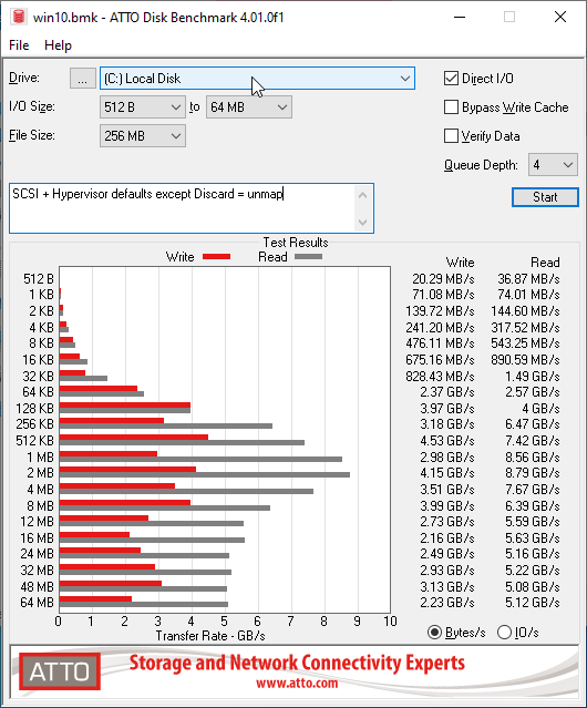 So I have put w10pro64 into production. As the name implies this is a 64-bit Windows 10 Professional VM. What the name does not say is that it runs the latest version of Windows 10: 2004. That means it has more failures than the others... for now. The goal is to use it to balance the load across two VM hosts. So it will run the various language tests, always against the latest Windows 10 release, while w1064 will deal with the previous Windows 10 releases and other configurations such as dual-screen and (hopefully) PCI passthrough. Right now w10pro64 also runs the dual-screen tests because it has a newer QXL driver that should have fewer failures (bug 48926) but that should change after I update w1064. For those who are interested I did quite a few tests on w10pro64 before putting it in production to see the impact of the QEmu configuration. One part of it was to see if it was possible to reduce the number of failures by tweaking the configuration. That did not yield any meaningful result. The other part was to check various options' impact on performance. CPU: IvyBridge * 3 cores ------------------------ IvyBridge is the baseline of our current VM hosts (vm1, vm3 and vm4). So it should be possible to move the VM from one host to the other without changing its configuration (and also without risking upsetting Windows' license checks). Most of our tests are single threaded. But in order to root out race conditions I think all VMs should have at least 2 vcpus. The question was whether adding more would help. So I used mpstat at a 5 second interval to trace the CPU usage on the host while WineTest ran in the VM. I mostly ran the tests with 4 vcpus (specifically 4 cores to avoid licensing issues). The host has 4 cores. This showed that even when given 4 cores the VM spends 70% to 80% (depending on the run) of its time using less than one core, 97% using less than two cores and only 0.5% using more than 3 cores. So giving it two or three cores is plenty. So what is the CPU doing when not running the VM / tests? The stats show it waits for IO only 3% of the time which is as it should given the caching available on the host and the SSD disk. System and user CPU usage are also pretty low so most of the time the CPU is just idle. More specifically the host is 75% idle (i.e. uses less than 1 core) more than 50% of the time. The why is still somewhat of a mystery to me. Idle time can result from the audio tests (waiting for the buffered sound to play) and network tests (waiting for network data). There are also a few places where we wait for some operation to time out but surely not that many? So how can we eliminate this idle time and speed up the tests? Memory : 4GB ------------ A test with 8GB shows adding memory does not help the test or allow them to run faster. I prefer limiting how much memory the VMs use because I expect it to result in smaller live snapshots: w10pro64's disk image shot from 14 GB to 53GB when I added the 13 live snaphosts. That works out to about 3GB per live snapshot (disk COW+RAM). Interestingly it's less than the VM's amount of memory which means QEmu does not save the unused memory. But I suspect QEmu still saves Windows disk cache so that increasing memory result in bigger snapshots. Clock : HPET ------------ Initially the guest was using a significant amount of CPU on the host even when Windows was doing nothing. It turns out this is because by default libvirt does not add the HPET timer. Adding the following line fixed this: <clock offset='localtime'> [...] <timer name='hpet' present='yes'/> </clock> Disk: Virtio SCSI + unmap ------------------------- The SCSI Virtio driver is the recommended configuration and I manually set the discard mode to unmap to prevent qcow2 bloat (is that QEmu's default?). Then I tested the disk performance with ATTO. https://www.atto.com/disk-benchmark/ * In its default configuration ATTO uses a small 128 MB test file. Since such a small file easily fits in the OS' cache ATTO uses fsync-like functionality to ensure it tests the disk performance rather than the memory's. * But in the default QEmu configuration (writeback mode) caching still occurs outside the VM which fools Atto and results in read and write speeds in the GB/s range on a SATA SSD (see w10pro64_scsi+default+unmap.png). But then our tests don't write all that much to disk so this test is quite realistic. All in all this means the default configuration should provide more than fast enough disk access. * The results are the same when caching is explicitly set to writeback (i.e. it's QEmu's default). (see wtbw10pro64_scsi+writeback+unmap.png) * I also ran an ATTO test with a bigger file size (see w10pro64_scsi+default+unmap+4GB.png). We then clearly see writes being capped by the SSD speed while reads still benefit from the host cache. This shows that disk performance is still ok even when writing more data. * Some sites recommend setting io.mode=threads but that forces cache.mode=none or directsync. That prevents the host from doing extra caching and then we find the true underlying disk performance in ATTO. I think that configuration makes sense when one wants to be sure the VM's filesystem will remain in a consistent state in case of a host crash or power outage. But in such a case we would just revert the VM to the last snapshot and continue. Then the default configuration provides us with better disk performance. (see w10pro64_scsi+directsync+native+unmap.png and for comparison directsync alone w10pro64_scsi+directsync+unmap.png) -- Francois Gouget <fgouget(a)codeweavers.com>