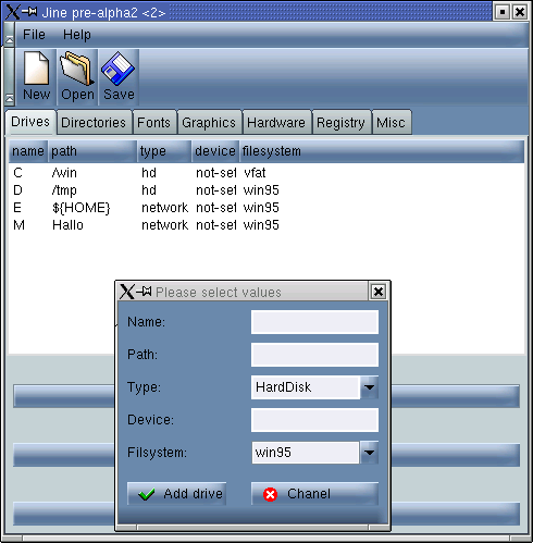 Hi! I'm one of two web-masters of www.linux-wine.de . Many people in our forum asked for a graphical frontend to the wine.config. And because google didnt find anything, I've just wrote a prototype. Its written in Java, is compiled to a native-Linux program via gcj and uses java-gtk as toolkit. It is nearyl as fast as a C++ program, but coding is much faster und easier. And (for all GNU-fanatics) its fully GPL-compatible.... My problem is, that I dont know all options of the config-file. Till now I only implemented the options which stands in my wine-config, including the ;-Entries. Only the specific-program settings are not iplemented, its too hard to make this part GUI-based (I'm so sorry, but my english is terrible). Is there somewhere an overview over all avaible options? Is such a tool already avaible, or an existing codebase? Please note that Jine (Jawy after the rewrite) isnt ready for use. O.K it does work, but the code is awful and I'm currently working on a rewrite. May I ask wine-questions for this tool at this list? Thx , Linuxhippy