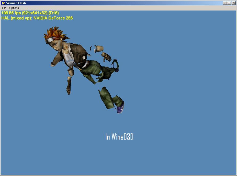 The bug is from DirectX 8.1 SDK, C++ samples, Direct3D samples, SkinnedMesh. Please, see the attached file for clear idea. Tested with latest wine 1.1.38 Best regards, MD. IMAM HOSSAIN