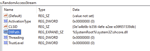 In the Windows version I have been checking with (W10 22H2 or something like that), Windows.Storage.Streams.RandomAccessStream runtime class is registered from windows.storage.dll. There has been other instances where the classes are moved around, I think we can assume it does not really matter. -- Rémi Bernon <rbernon(a)codeweavers.com>