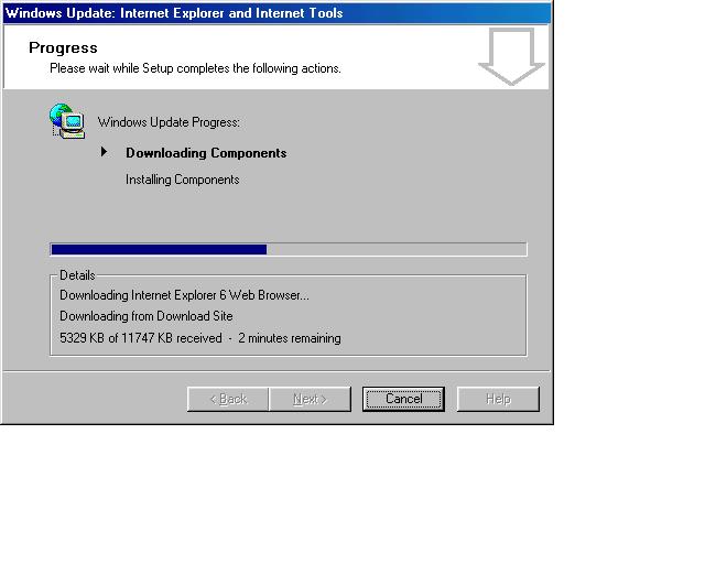 That is not true here. I have Windows 98 SE 4.10.2222 A here with IE 5 (and Firefox) installed. I used the file from: http://download.microsoft.com/download/ie6sp1/finrel/6_sp1/W98NT42KMeXP/EN-U... It had no problems with "Downloading Components" See attached jpg. -- Tony Lambregts