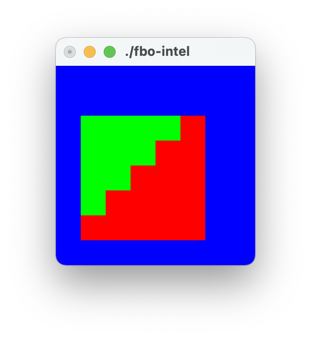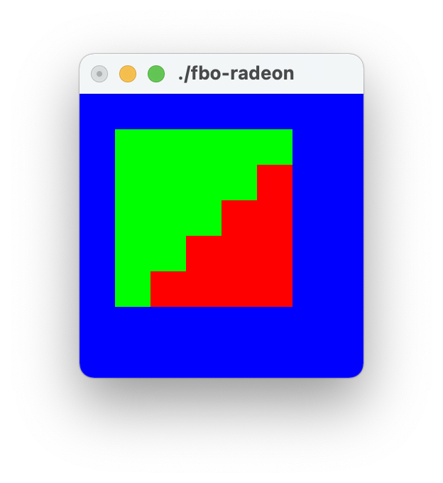Because we don't know what OpenGL is doing, i.e. it might generate a fragment if the pixel center is on a right edge of a triangle, either due to underspecification or driver bugs? I was under the impression that GL guarantees a top-left filling rule (pixel is on a top edge OR on a left edge of a triangle -> generate fragment), but on further research the only place that states that (that I could find) is https://docs.microsoft.com/th-th/windows/win32/direct3d9/rasterization-rules , which isn't exactly an authoritative source on GL. The rest of your explanation makes perfect sense to me. The attached filling.c file is an attempt at detecting what the GL implementation does when rendering into an FBO. It correctly picks up the difference of the radeon driver on MacOS (radeon.png) - the only driver that doesn't pass the d3d9 viewport test with a precise 0.5 pixel shift. Other cards I tested result in the same output (intel.png, linux-noflip.png). Sadly, while it does match up with with the d3d9 test, it doesn't match up with SPORE nor World of Tanks. World of Tanks wants no nudge everywhere, even the radeon card. SPORE is broken on MacOS regardless of what I try to do, but works on Linux-Radeon either with or without the nudge. I can deliberately break it everywhere by removing the half pixel offset, but that doesn't tell us anything we didn't already know. So something else must be going on. My suspicions are that it has something to do with shaders vs fixed function or core vs legacy context. It is also possible that the issue is entirely unrelated, at least in World of Tanks. The filling.c program also shows one place where the x nudge makes a difference when inverting the geometry: It flips the diagonal pixels back to the red triangle. The y nudge is (understandably) necessary to place the quad correctly nearer to the top of the texture rather than the bottom. I haven't yet found a card that generates a fragment when the center is on the right triangle edge.