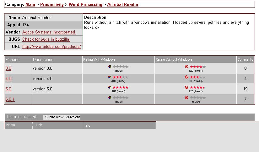 One of my conceptions of wine is as a stepping stone for users switching over to linux from windows that still only feel comfortable with windows apps or those that don't know what linux apps are available. What do you think about adding a 'Similar Linux Application' link or section to each windows app where applicable that would point them in the direction of the linux equivalent of the windows app and thus help with the transition process? They might not necessarily use the app, but at least they'll be more aware. What are some ideas about this? -- James Hawkins