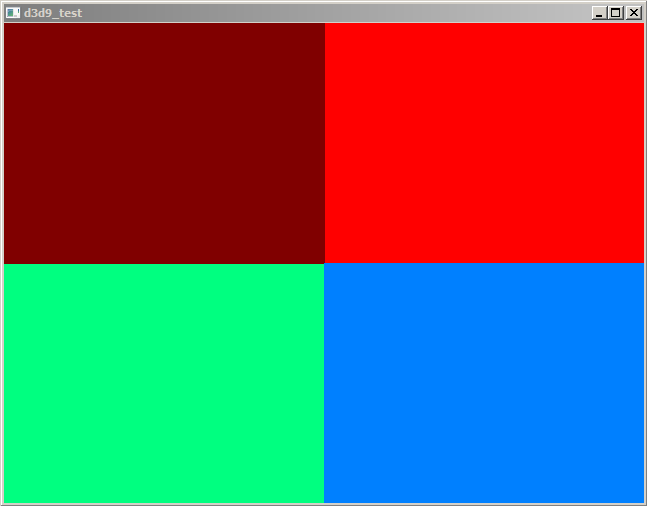 I got a new file for you to test. https://www.dropbox.com/s/9a3t1j2nsy3nlm0/d3d9_crosstest.exe?dl=0 I made some big mistakes on the first one (like wine and windows flags were inverted). This new one will hopefully only fail on the middle of the projection (due to rounding i will fix tomorrow), and DFXX.